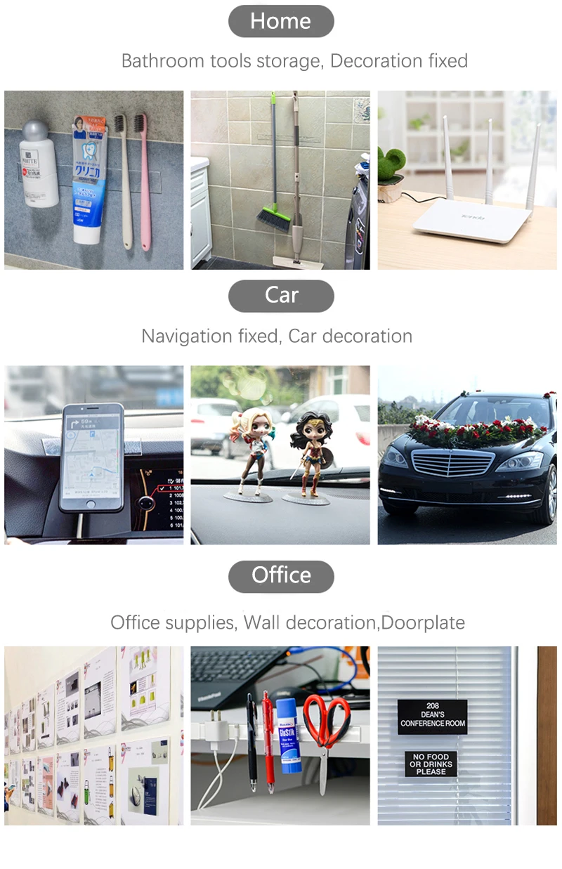 দেয়ালে, টাইলসে, কাঠে, গ্লাসে এবং স্টিলে লাগাতে পারবেন। রাউটার, ফ্রেম অথবা যেকোনো জিনিস দেয়ালে একবার লাগালে খুলে যাওয়ার কোনো সম্ভাবনা নেই। দেয়াল বা পৃষ্ঠের ক্ষতি করবে না ।
